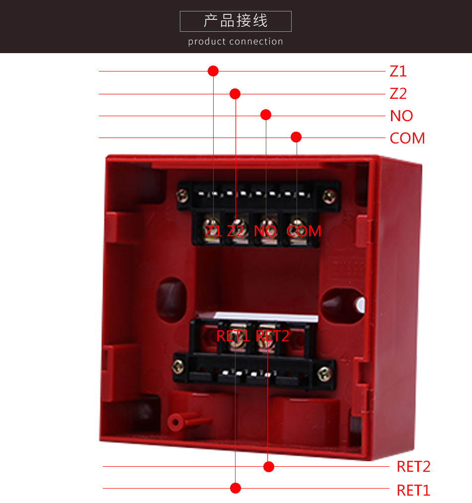 ●按下消火栓按片,可由消火栓提供獨立輸出觸點,可直接控制其它外部設備